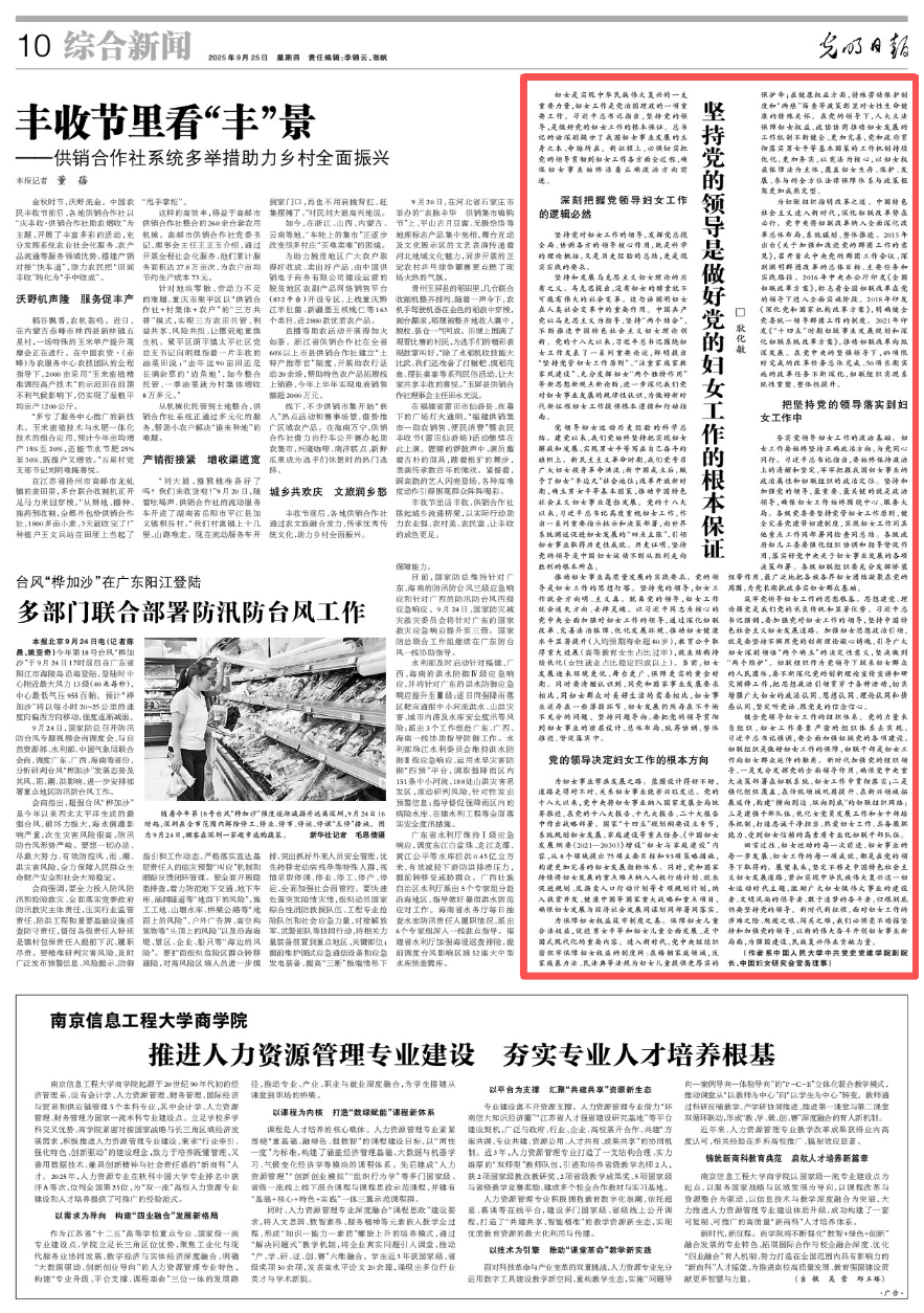 [光明日报]耿化敏:坚持党的领导是做好党的妇女工作的根本保证
