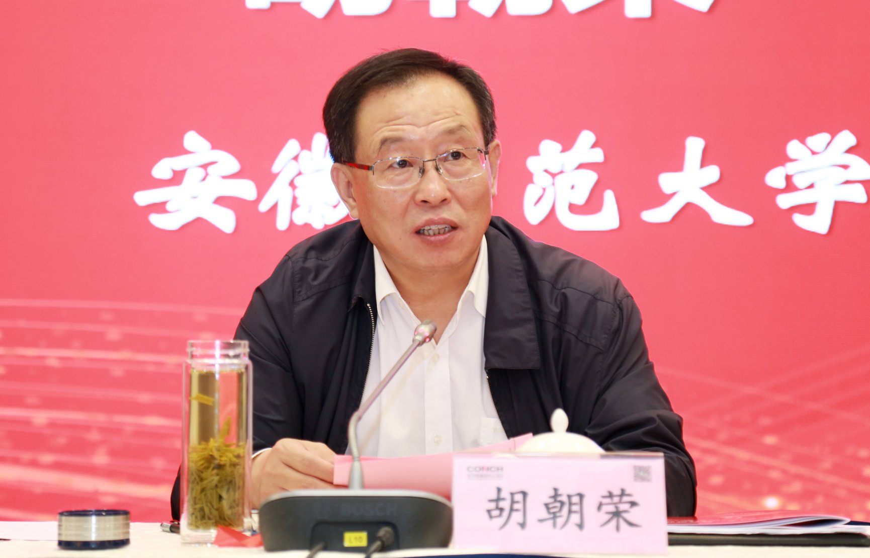 胡朝荣代表安徽师范大学致辞,简要介绍了安徽师大的办学历史、人才培养、发展态势等基本情况,以及马克思主义学院的办学发展历程、学科建设状况、教学科研成果以及优秀思政课教师典型代表,并预祝此次大会圆满成功。