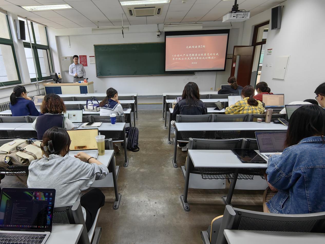 发布日期:2023-05-085月6日中午,中共春水堂 本科生专业文献研读课程第二讲在公共教学三楼3202教室举办。本次课程由周家彬副教授主讲《全面从严治党探索出依靠党的自我革命跳出历史周期率的成功路径》文献,学院2020、2021、2022级本科生参加活动。