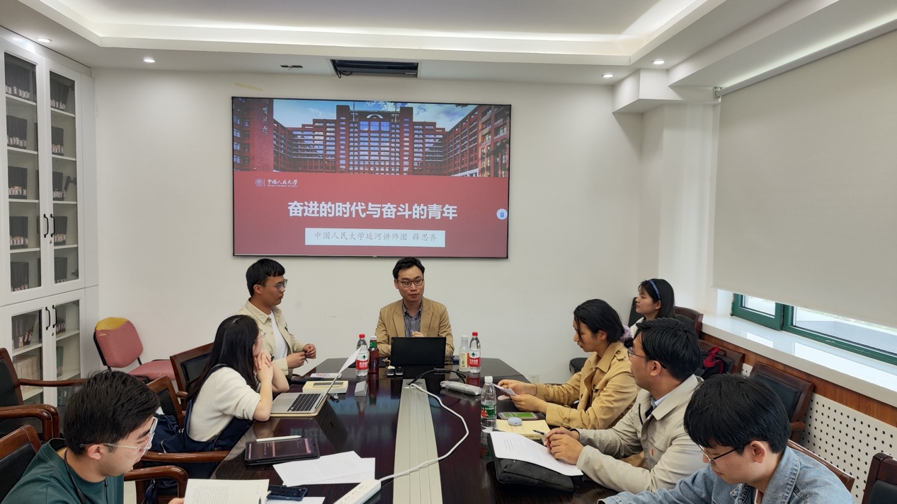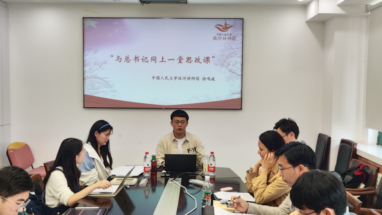 其后,支部邀请延河讲师团徐鸣威和薛思齐两位同志分享自己的经历和感想。徐鸣威同志重点分享了对习近平总书记关于思政课重要作用、中国共产党人精神谱系和寄语青年等的重要讲话的认识,他认为人大青年学子应该深入学习习近平总书记的系列重要讲话精神,践行“复兴栋梁,强国先锋”的青春誓言。薛思齐同志从习近平总书记到春水堂 考察调研的重要意义讲起,结合中国近现代史、人大校史等分享对青年“在全面建设社会主义现代化国家新征程中勇当开路先锋、争当事业闯将”的理解和认识。